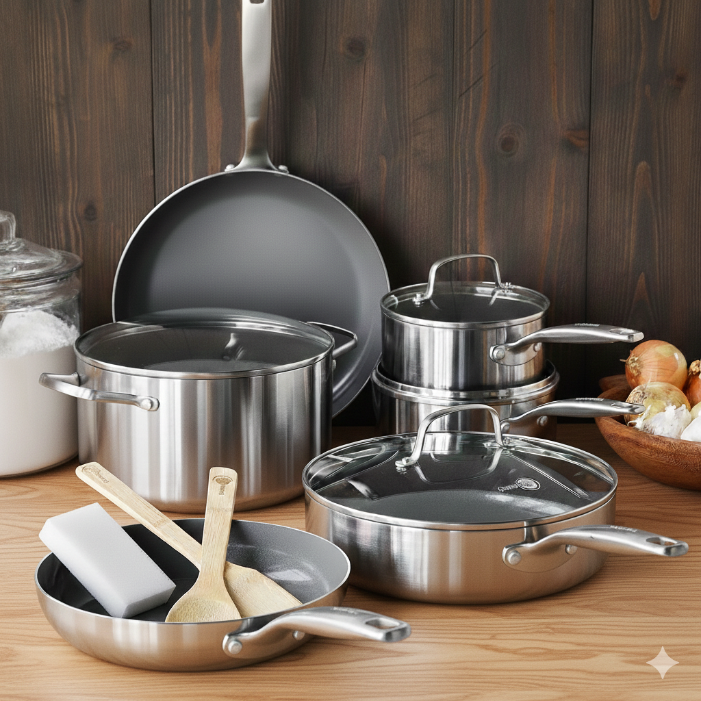 Stainless Steel Cookware 12-piece Pots & Pans Set